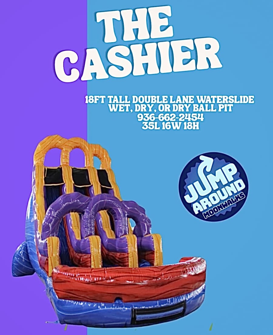 Don’t miss out on the most exciting water slide rental around! Perfect for keeping kids and adults entertained and cool during the warmer months, The Cashier is a must-have for any successful outdoor event. Contact us now to reserve your date and let us bring the thrill of The Cashier double lane water slide to your location!